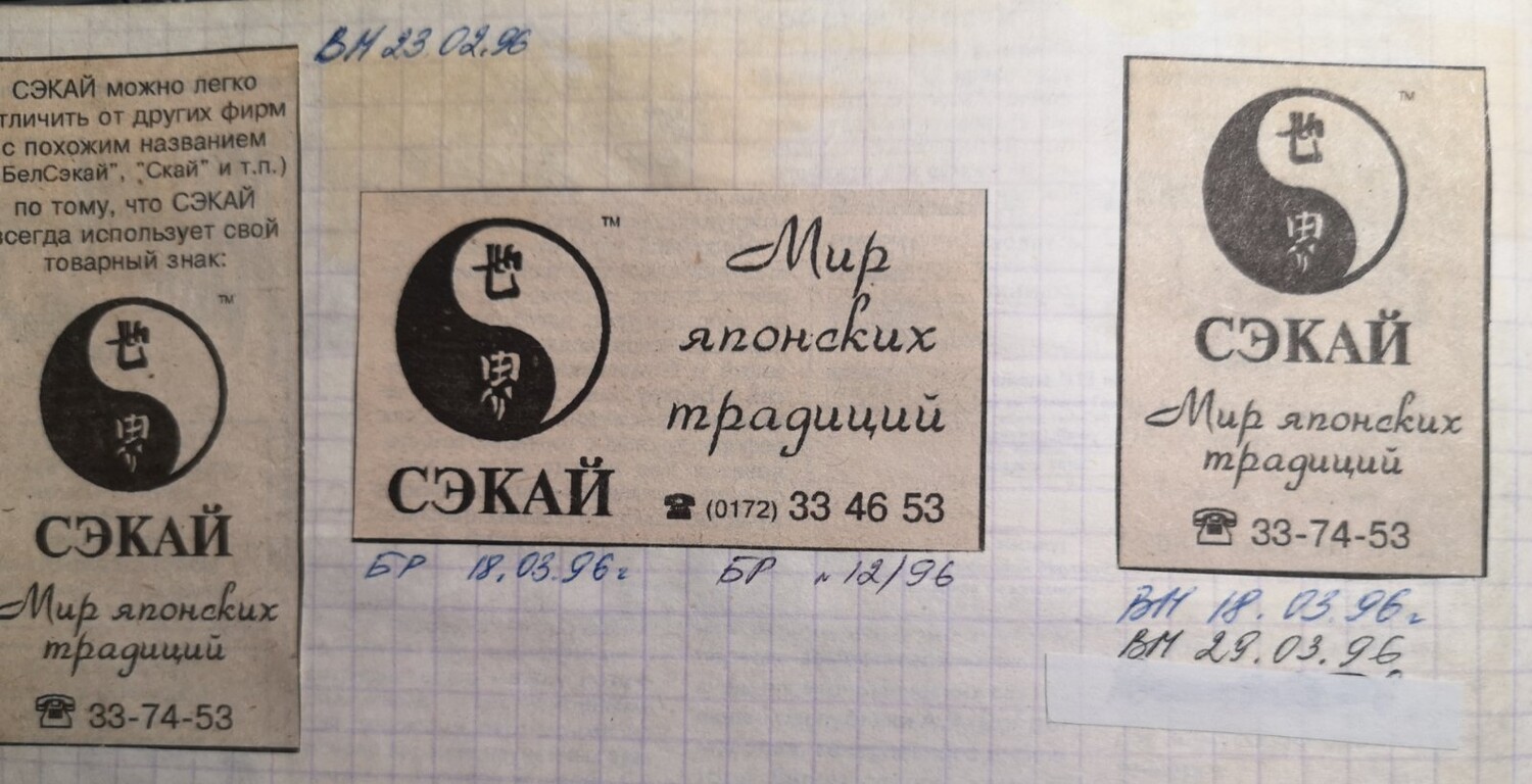 Как видите использовался только Товарный Знак (был официально зарегистрирован ,кстати) и слоган. В видео дикторша со сме"уёчками типа цитировала нашу рекламу: "ва што укладалi? У перспектыуныя японскiя тэхналогii". Хлусьня беларуская. Нигде, никогда ничего подобного в рекламе не было. Мы писали, как видите выше: "Мир японских традиций" включая и рекламу на электричке в Молодечно.